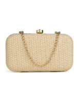 Beigeembroidered box clutches Has shoulder strap, 1 main compartment with twist closure