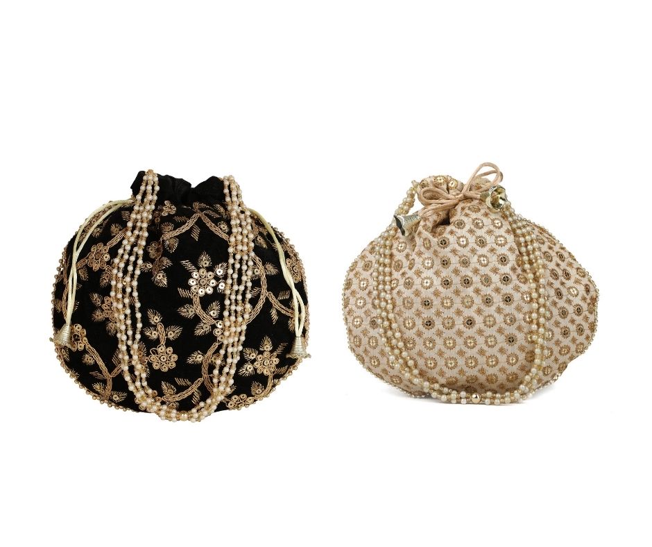 Home W_Bags Potlis PK 2 Combo – Designer Embroidered Potli Bag – Golden & Black