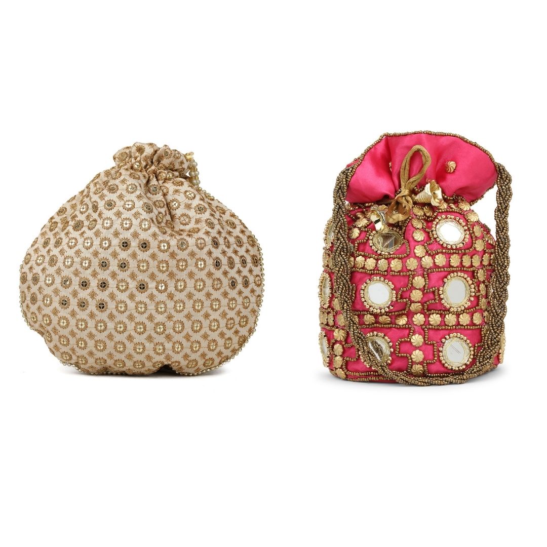 Combo – Designer Embroidered Potli Bag – Golden & Beige