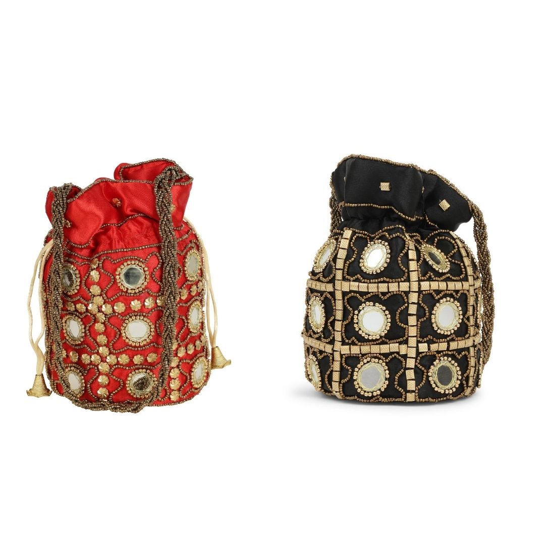 Combo – Designer Embroidered Potli Bag – Red & Black