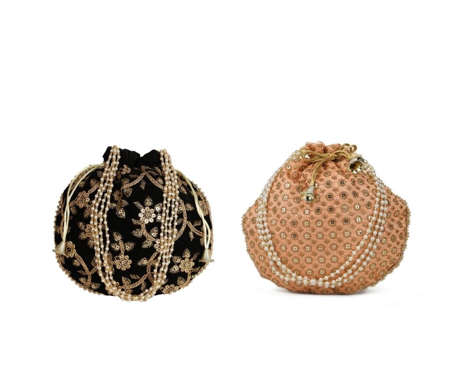 Be the first to review “Combo of Beige & Black Color Designer Embroidered Potli Bag” Cancel reply