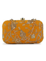 Mustard Embroidered Box Clutch For Girls and womens